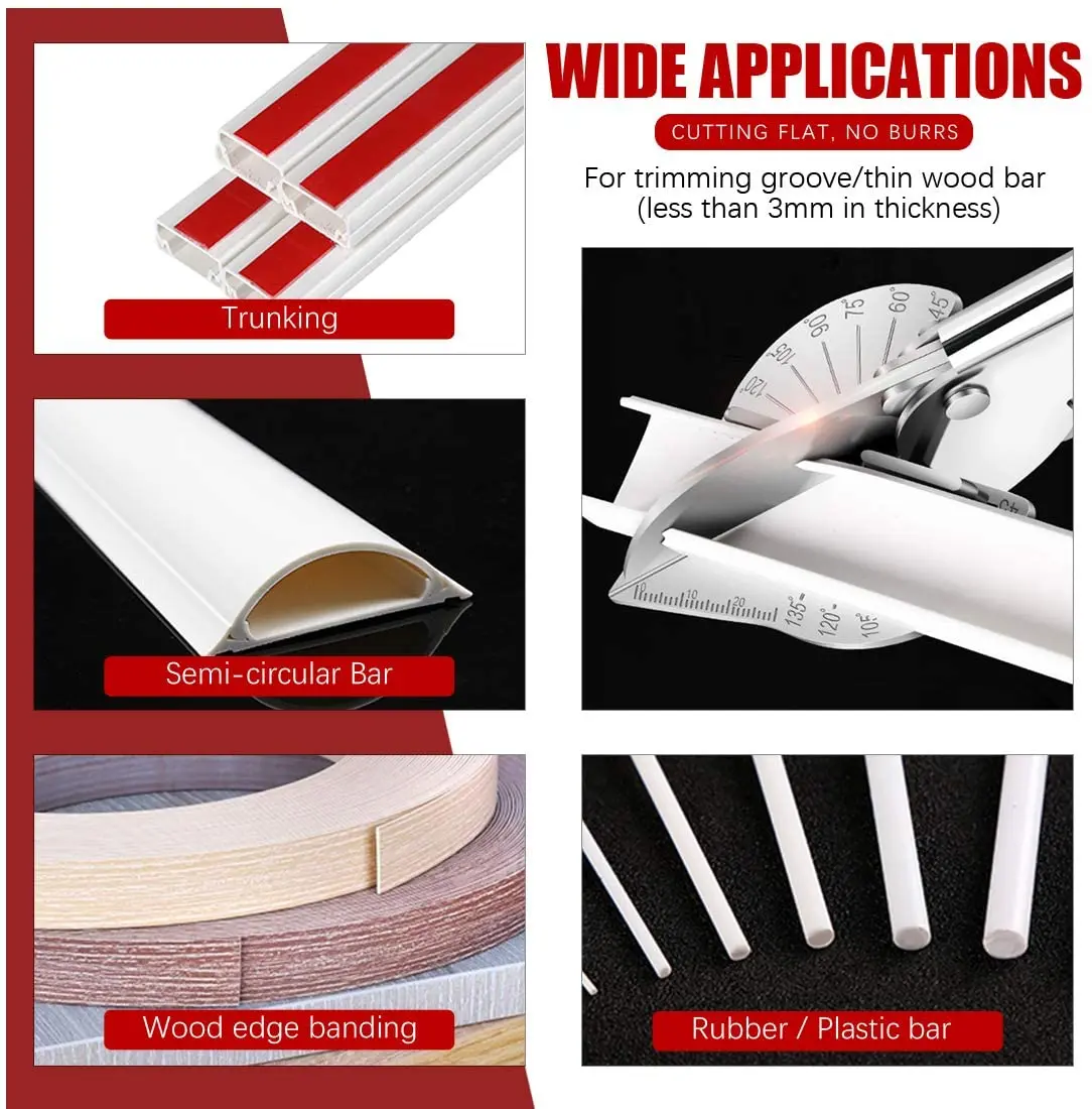 【Высококачественная нержавеющая сталь 】 закалка из нержавеющей стали, высокая ударная прочность и износостойкость с 5 запасными лезвиями SK5 и 1 гаечным ключом.【Хорошая Производительность: 45 градусов до 135 градусов, хороший и чистый крой, без заусенцев. Большой открытый рот дизайн и с четкой маркировкой для регулировки угла, который вы хотите, для легкой и точной работы. Это избавляет вас от многих проблем, чтобы измерить угол, который вы пытаетесь разрезать. Регулируемый, удобный, быстрый и эффективный.【Широко используется 】 Режущий инструмент для резки пластиковых труб, формовки обуви и большинства мягких предметов, домашнего декора, создания рамок для картин, повседневной работы или даже проектов DIY. Они также известны как ножницы для ножниц, фаски, обрезки и круглого резака.【STRONG & EASY TO OPERATE】Miter cutter имеет встроенный трафарет для угловых разрезов. Он режет гладкий и чистый. Невероятная точность многоугольная режущая машина отлично подходит для резки 1/4 патронов, любых небольших работ или научных проектов.