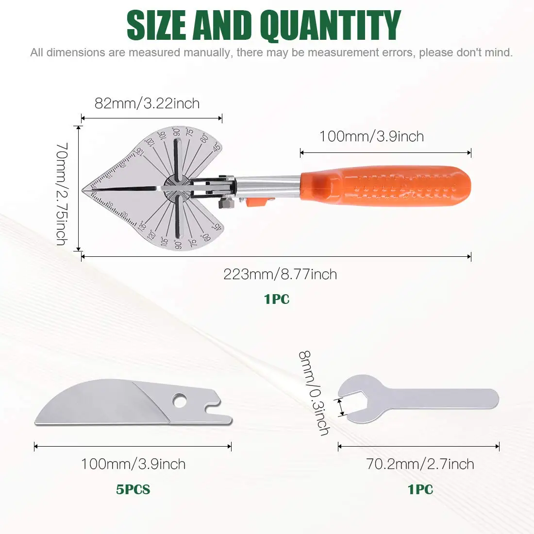 45 градусов 135 градусов Угловые ножницымногофункциональные Угловые ножницырезак для проволочного слота с 5 сменными лезвиями и гаечным ключом, плоскогубцами