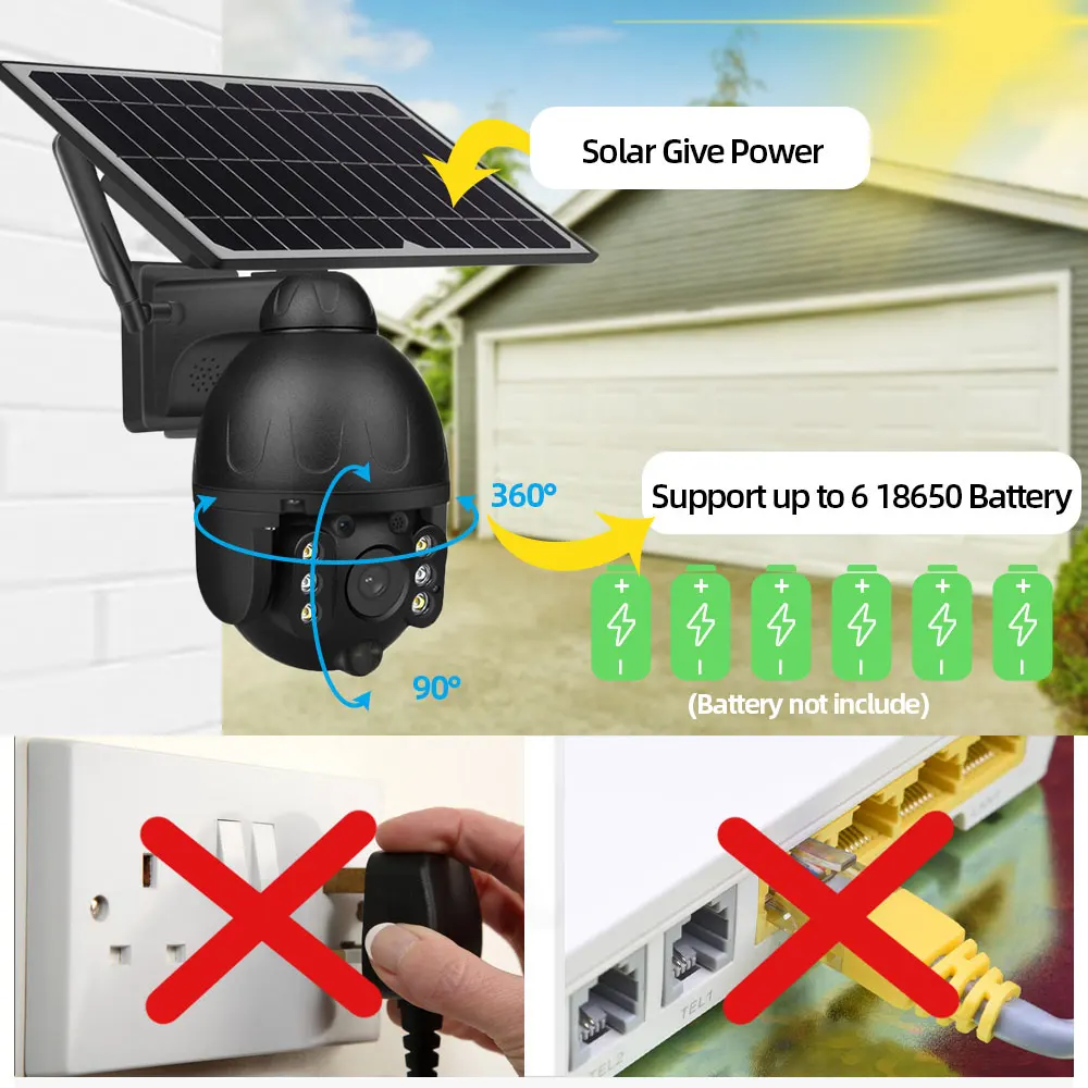 Нет блока питания? Нет сетевого кабеля? Вам нужен наш солнечный камер 4g с батареей. Или Wi-Fi Солнечная камера с батареей