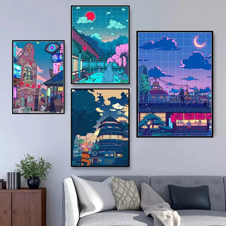 HD Печатные Картины домашний декор аниме эстетика Холст плакат моду...