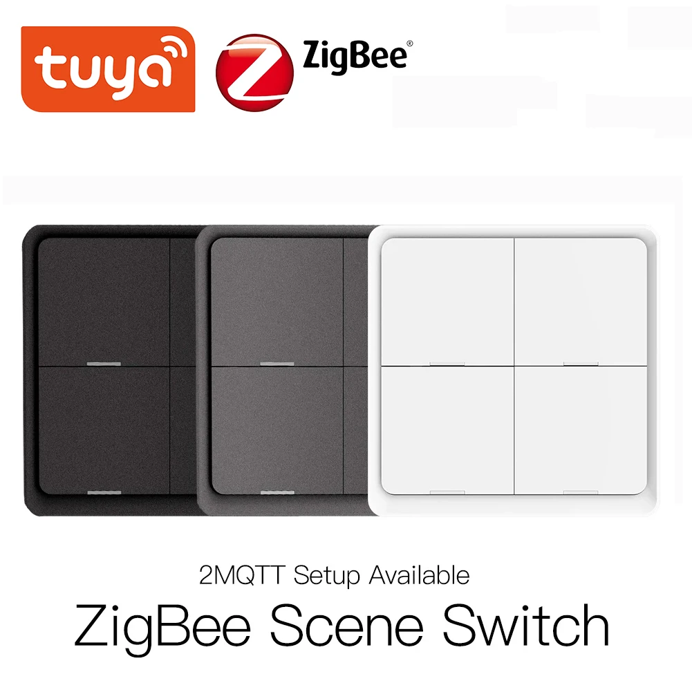 Кнопочный переключатель Tuya ZigBee, 4 клавиши, 12 режимов работы, с питанием от батареи, 2MQTT, автоматический сценарий для смарт-устройств Tuya