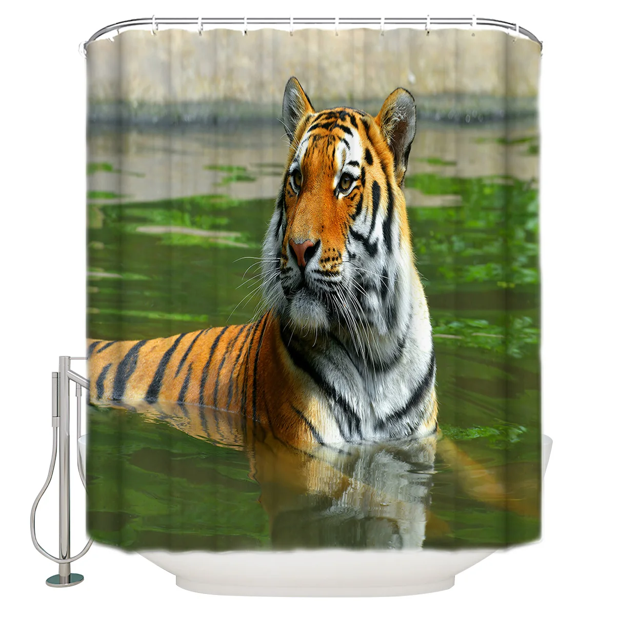 Современная занавеска для душа с изображением тигра, плавающего зверя, занавеска для душа из полиэстера с крючком для ванной комнаты