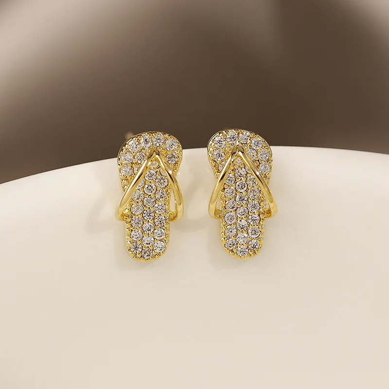 Происхождение, в Корейском стиле; Сезон лето; Модные тапочки серьги из горного хрусталя для женщин Необычные золотые Цвет металлик вечерние серьги ювелирные изделия