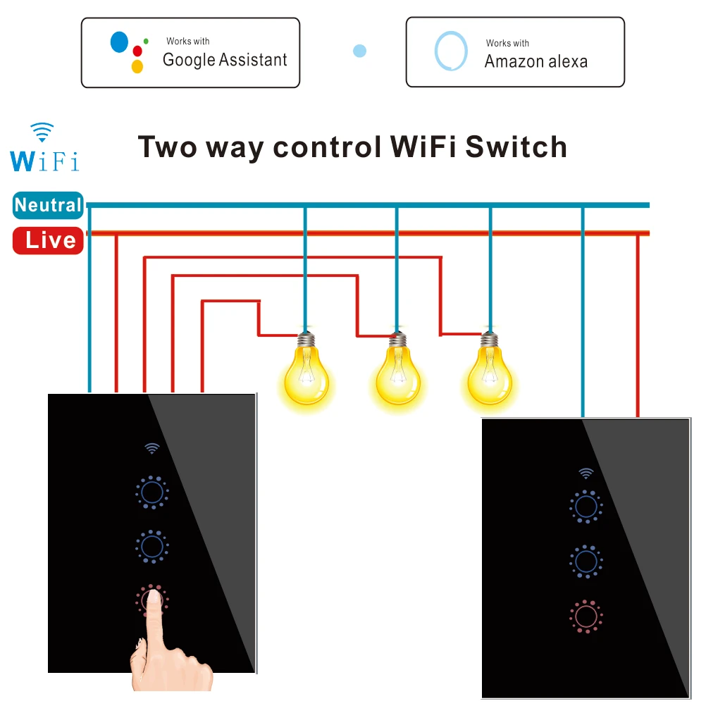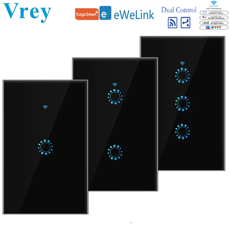 Врей нам умный сенсорный переключатель двойной Управление переключателя Два переключателя Управление одной и той же светильник Поддержка Wi-Fi приложение работает с Alexa Google Home
