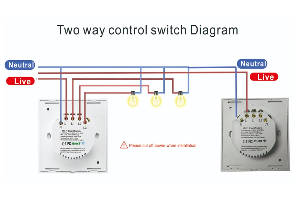 * Выключатель должен быть электрифицирован через пожарную линию и нулевую линию. Настенные переключатели в некоторых домах могут не иметь нейтральных линий. Пожалуйста, проверьте перед размещением заказа.