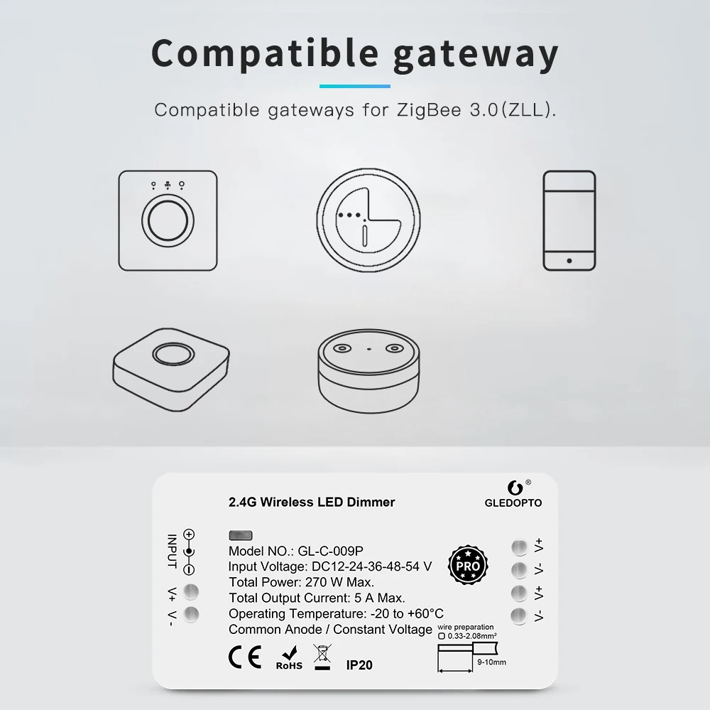 GL-C-009P:Zigbee PRO Dimming LED Strip Controller