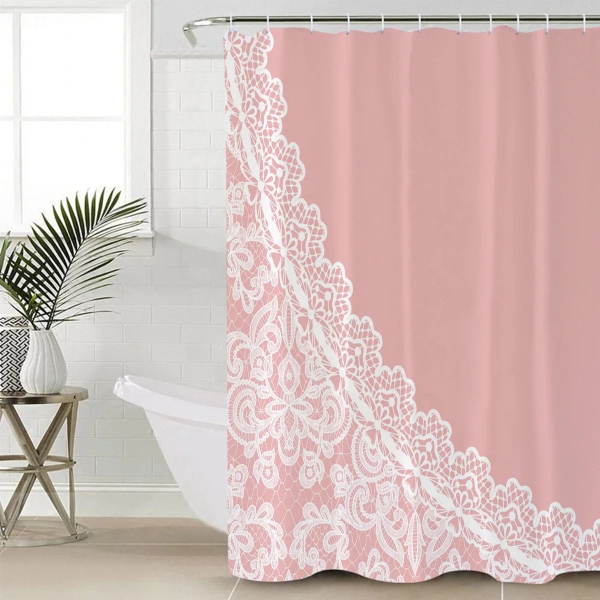 Современная занавеска для душа с узором и кружевными краями, Розовая Занавеска для ванной комнаты из специального изысканного водонепроницаемого полиэстера, занавеска для душа с крючком