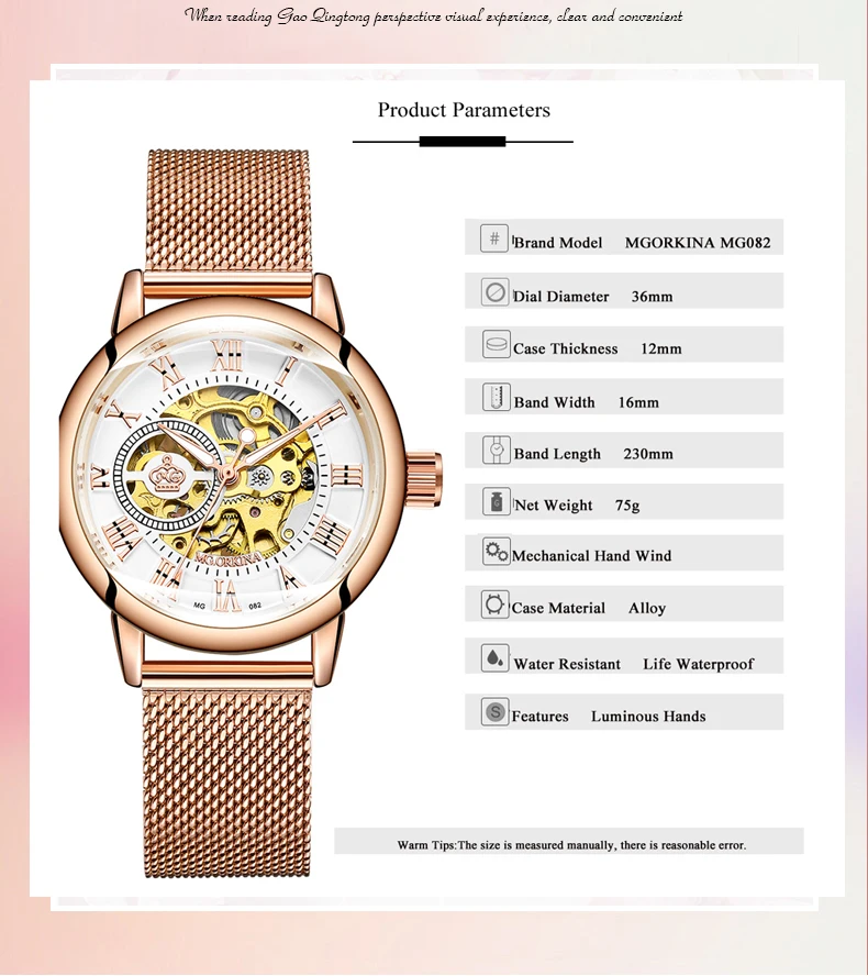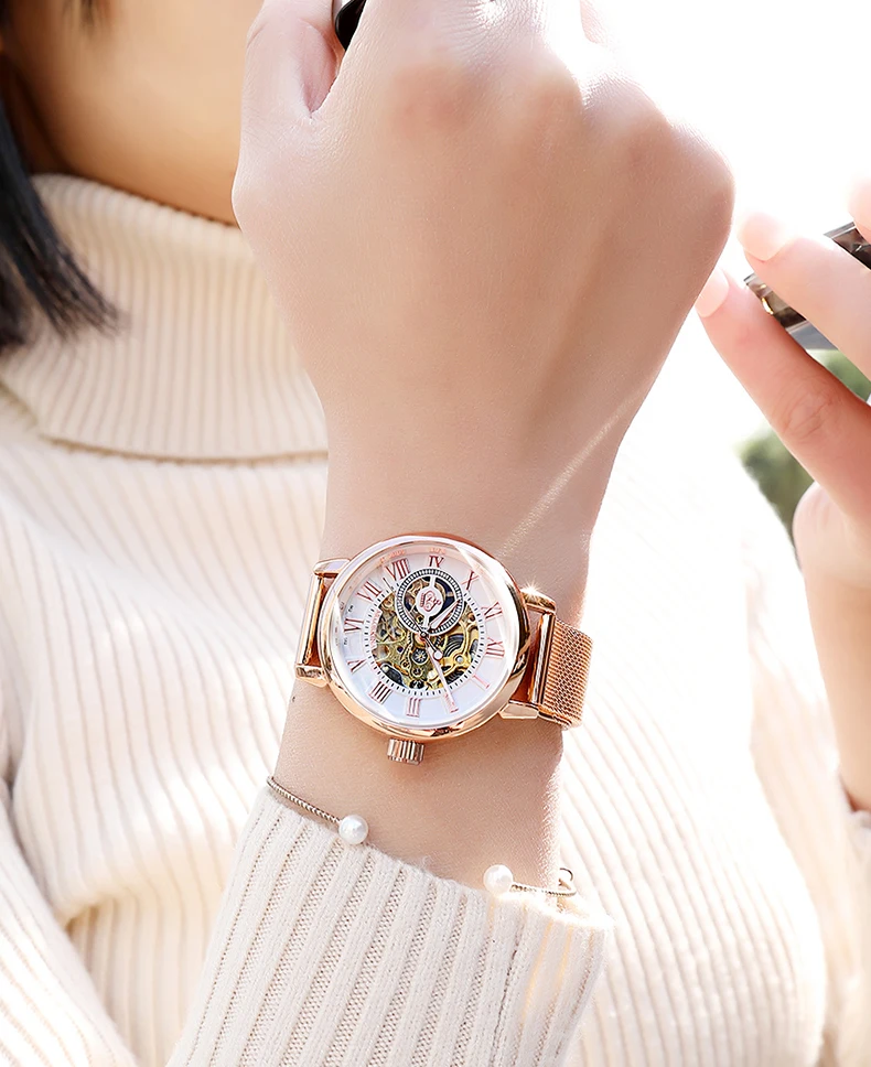 Часы женские ORKINA механические, розовое золото, автоматические, 2020