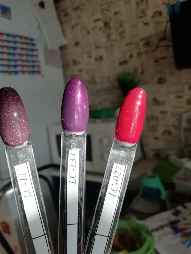 027 не такой как на картинке, совершенно. Это бордовый оттенок, теплый, но светлее, чем представлено у продавца. Намного. в 2 слоя перекрыл прозрачную типсу. Бытылек пластик, на пару раз сделать покрытие. Но пойдет, кто часто себе перекрашивает ногти. В лампе хорошо просушился, не скукожился. 111 с мелкими серебристыми блестками, плотный. 134-серовато-фиолетовый с очень мелким шиммером, светлее чем у продавца. Очень полупрозрачный, на типсе в 3 слоя только перекрыл.