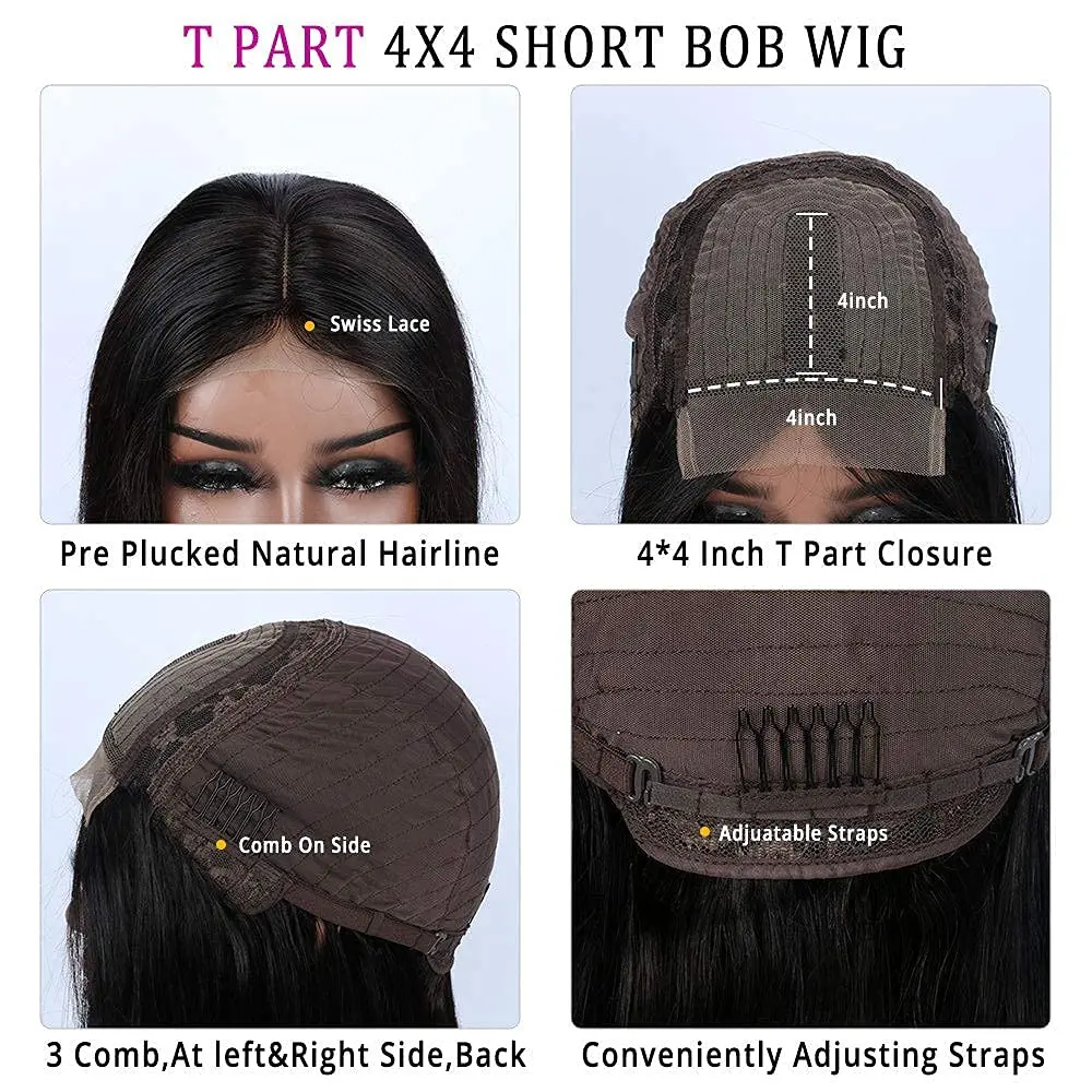 Короткие парики из человеческих волос, бразильские прямые волосы, парики из человеческих волос, 4*1 T, Недорогие парики из человеческих волос на сетке для женщин, королевы