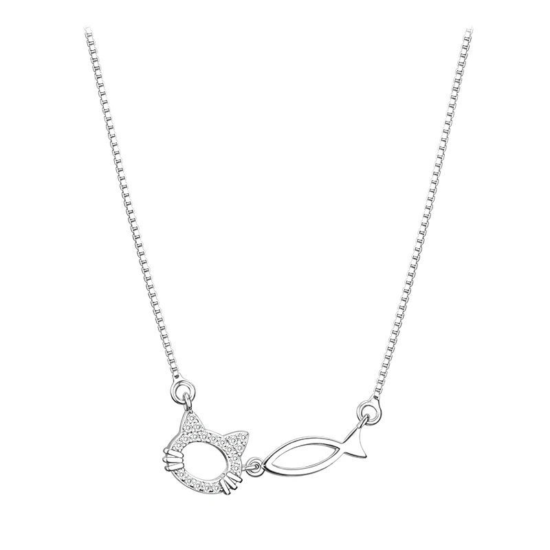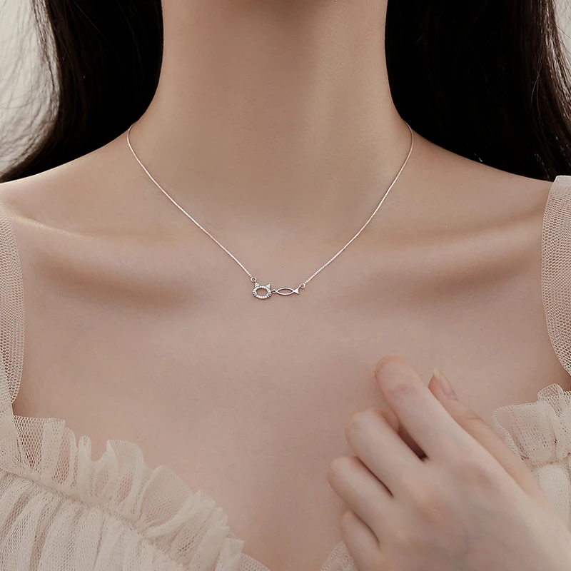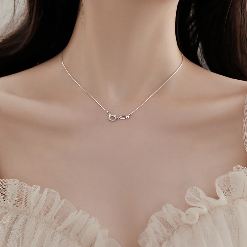 Ожерелье серебряного цвета с полыми рыбками и котом для женщин, цепочка с кубическим цирконием, очаровательные ожерелья, ювелирные изделия для вечеринки 2021