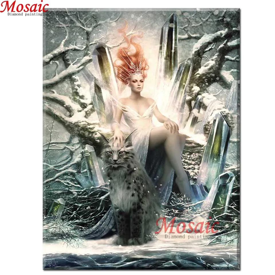 Алмазная картина 5d "сделай сам", квадратнаякруглая фея, полный набор вышивка стразами девушка, мозаика, кошки, феи, фэнтези, зима