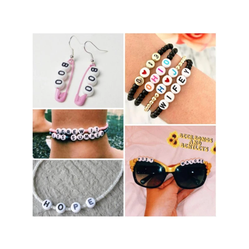 Наименование товара: 200 шт./коробка круглые акриловые бусины 4x7 мм смешанные бусины с буквами свободные бусины для изготовления украшений вручную Diy браслет ожерелье