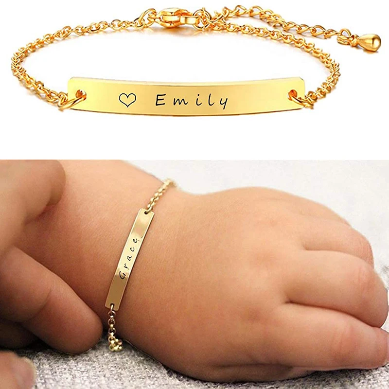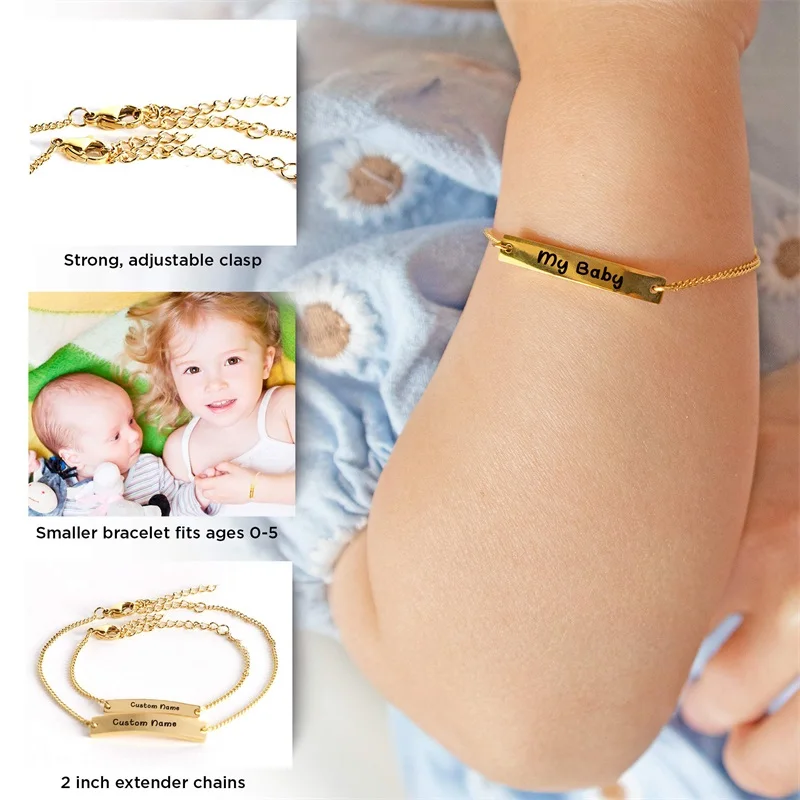 Браслеты с именем ребенка на заказ, персонализированные браслеты из нержавеющей стали с гравировкой букв, регулируемая детская цепочка, табличка с именем, ювелирные изделия