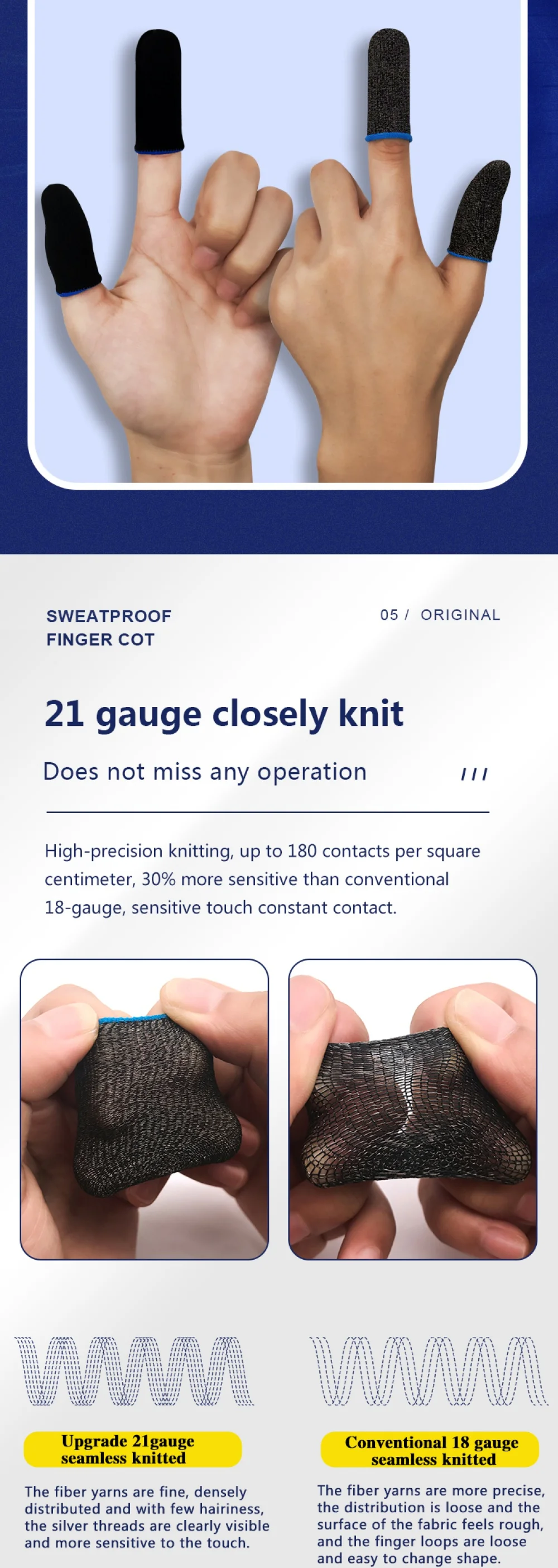 Этот чехол для пальцев может изолировать руки от пота от контакта с экраном, нескользящий, может улучшить ощущение от игры.
