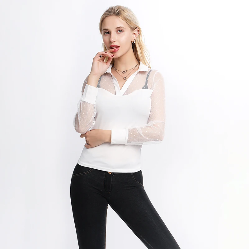 Новинка; Элегантные модные женские туфли из органической кожи Повседневная рубашка блузка Perspective прозрачное Сетчатое платье-фонарь с длинным рукавом в горошек Топы пляж Blusas