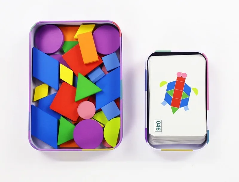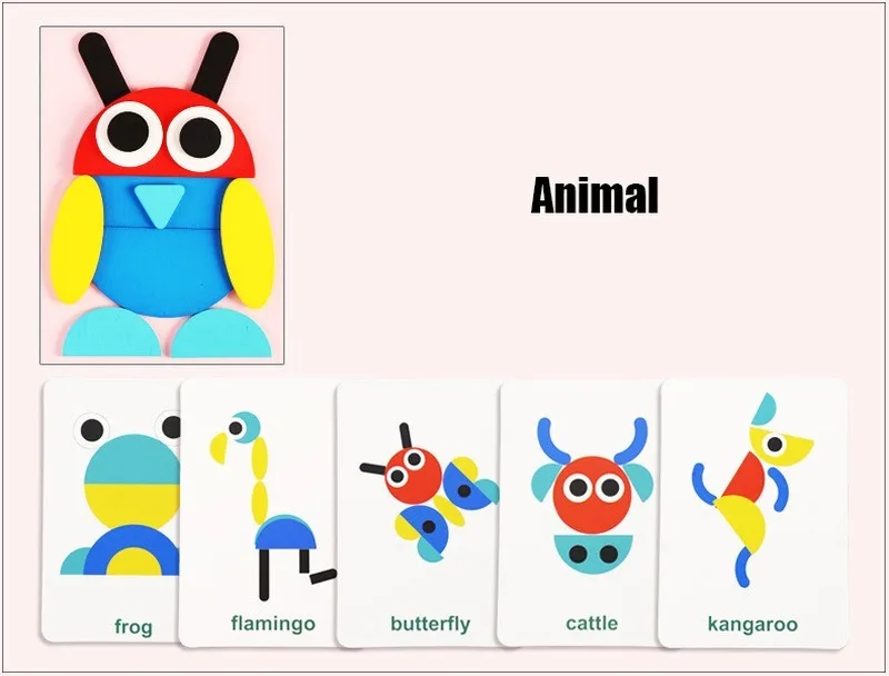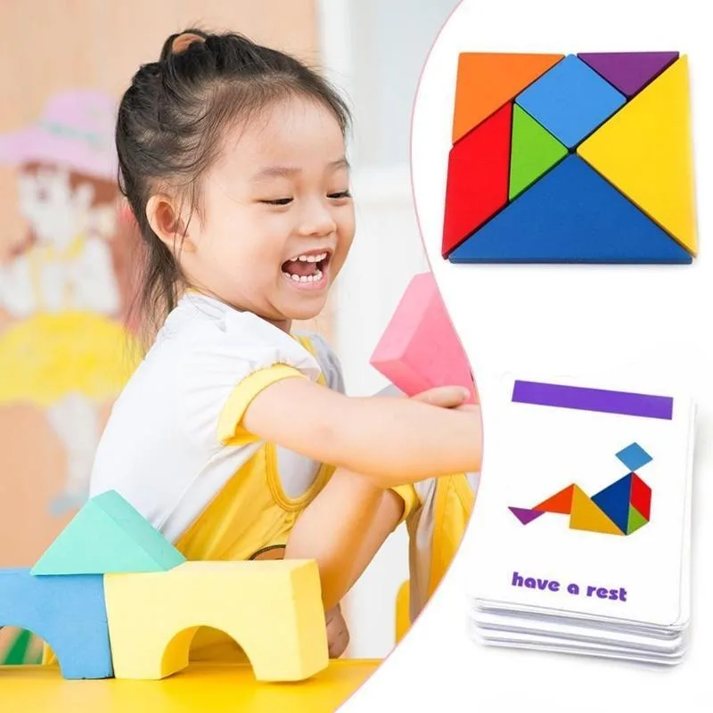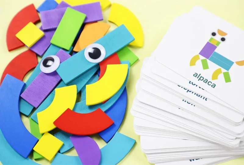 Детская деревянная головоломка с узором, разноцветная игрушка Танграм, Монтессори, Игрушки для раннего обучения детей, развивающая игрушка