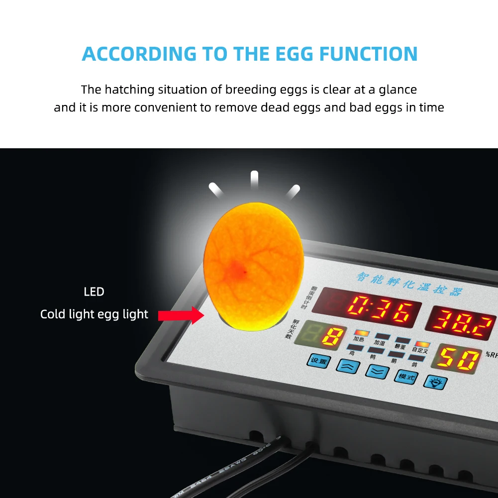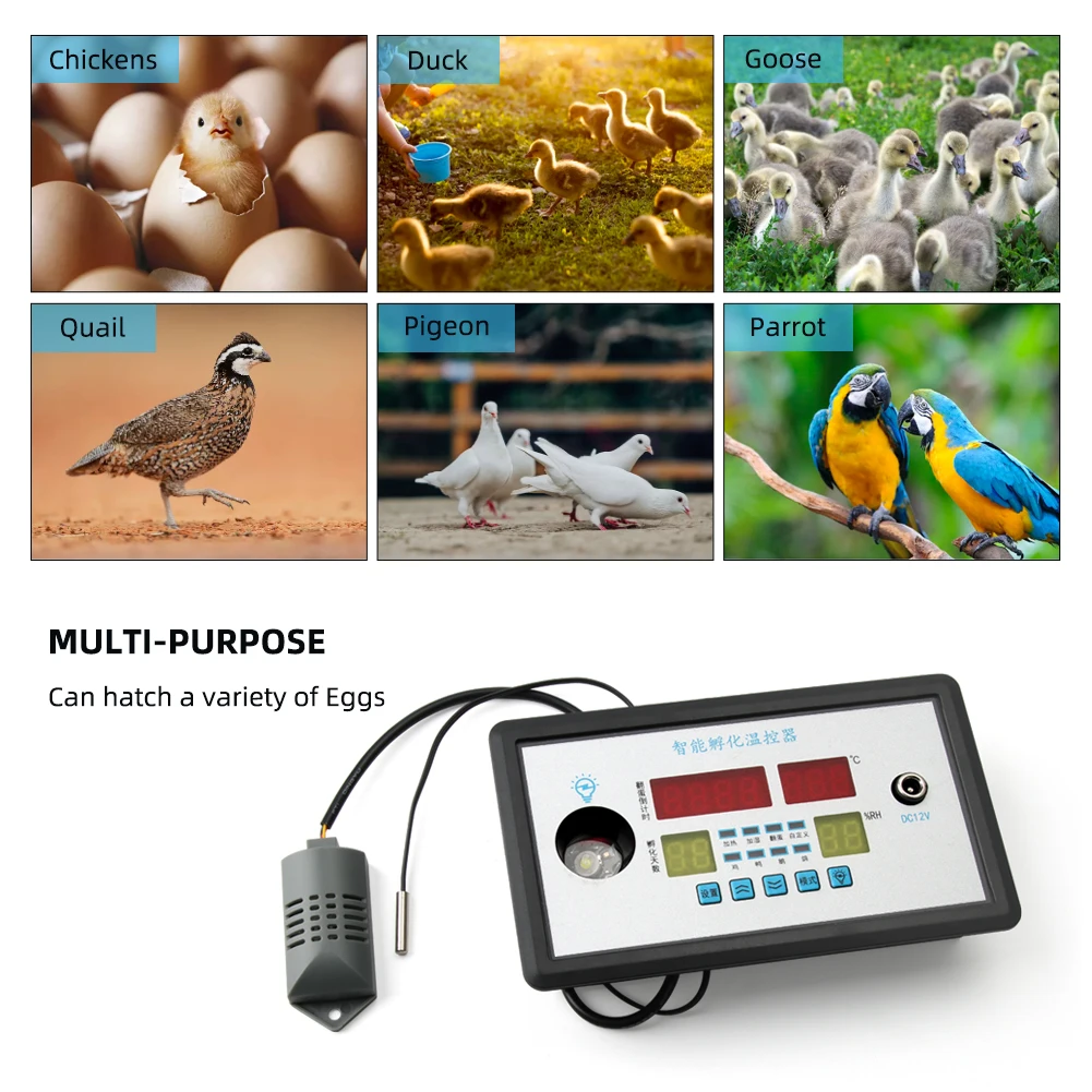 1. Название: Интеллектуальный инкубатор термостат2. Сенсорный ЖК-экран, элегантный внешний вид, односторонний дизайн, устойчивость к царапинам. Большой сенсорный ЖК-дисплей с подсветкой легко читается.3. Ручной/автоматический режим: свободно требуемый режим в зависимости от различных целей4. Термостат поддерживает различные настройки температуры, с несколькими режимами на выбор5. Многоцелевой, может инкубировать различные яйца6. Подходит для: курицы, утки, гуся, перепела, голубя, попугая