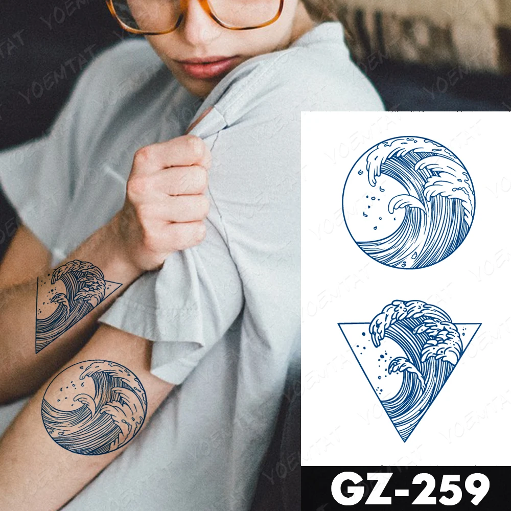 Тату временные женские Сок прочного чернил татуировки, боди-арт Водонепроницаемый временная татуировка Стикеры простой КИТ линии тату для рук поддельные волны океана татуировки золотого и серебряного Для женщин