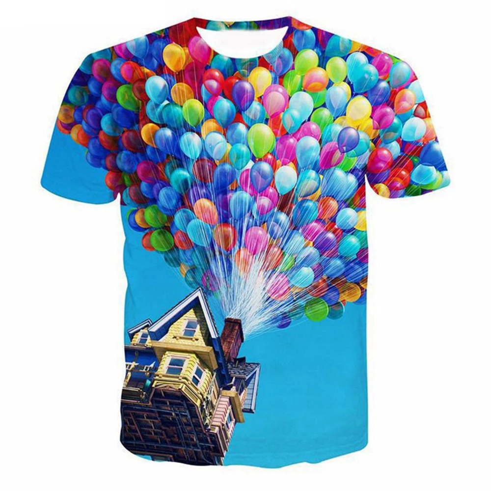 Мужскаяженская одежда, 3D футболка с воздушным шаром, летняя футболка с принтом из фильма UP, с изображением героев мультфильмов, любителей Галактики, летнего дерева