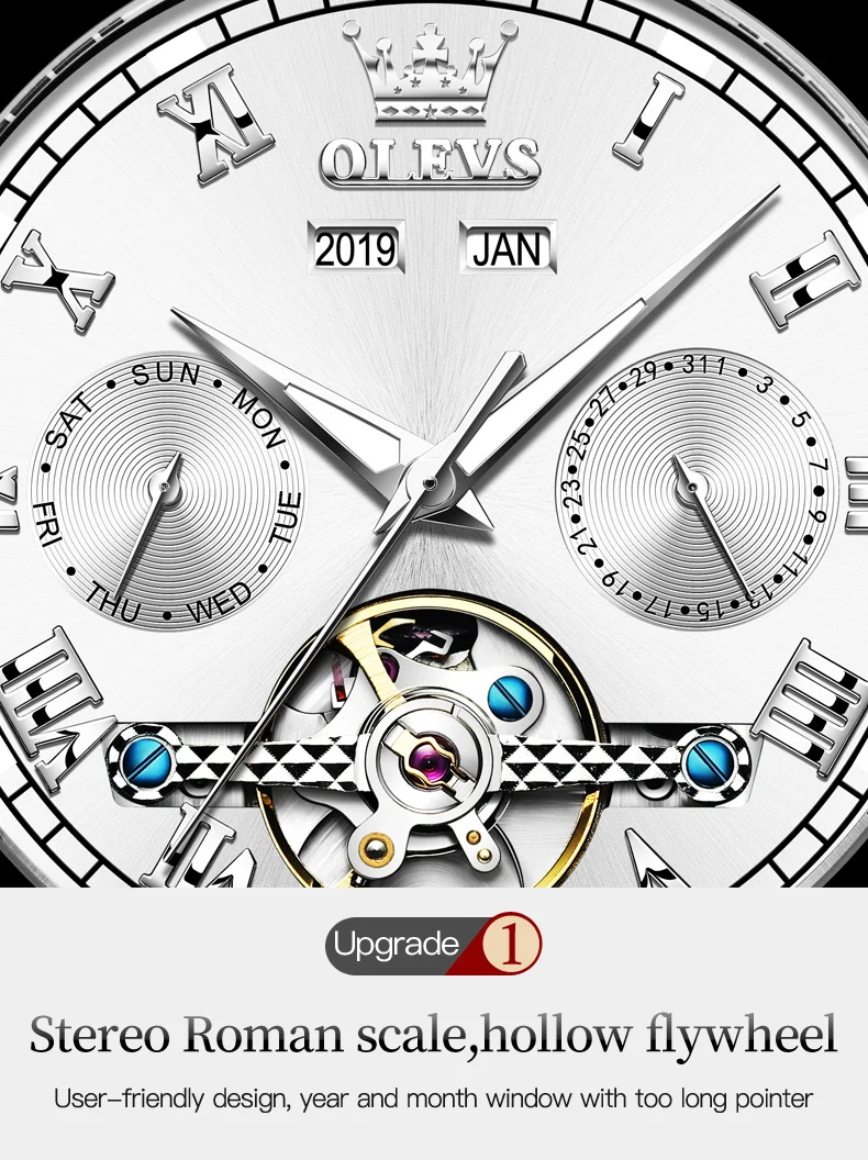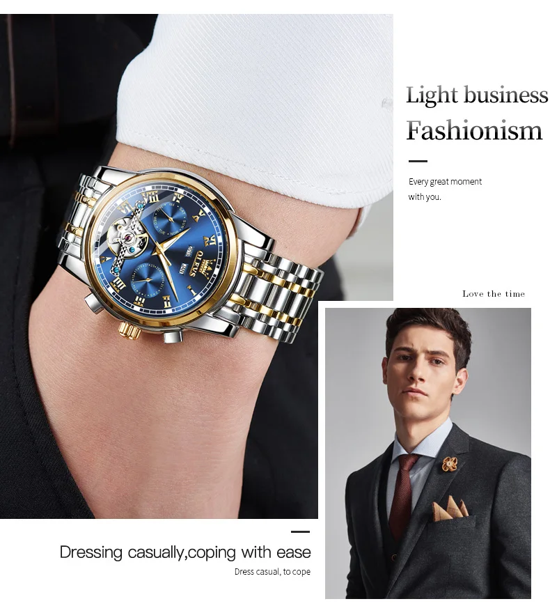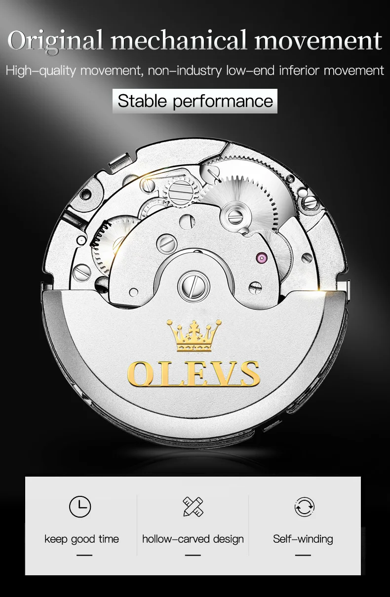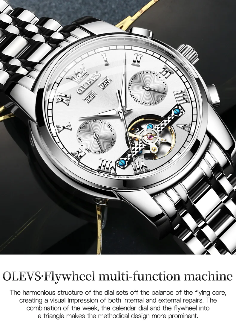 OLEVS Для мужчин смотреть автоматические механические часы из нержавеющей Топ Брендовое платье Роскошные фаза Луны Tourbillon наручные часы Подарки для мужчин