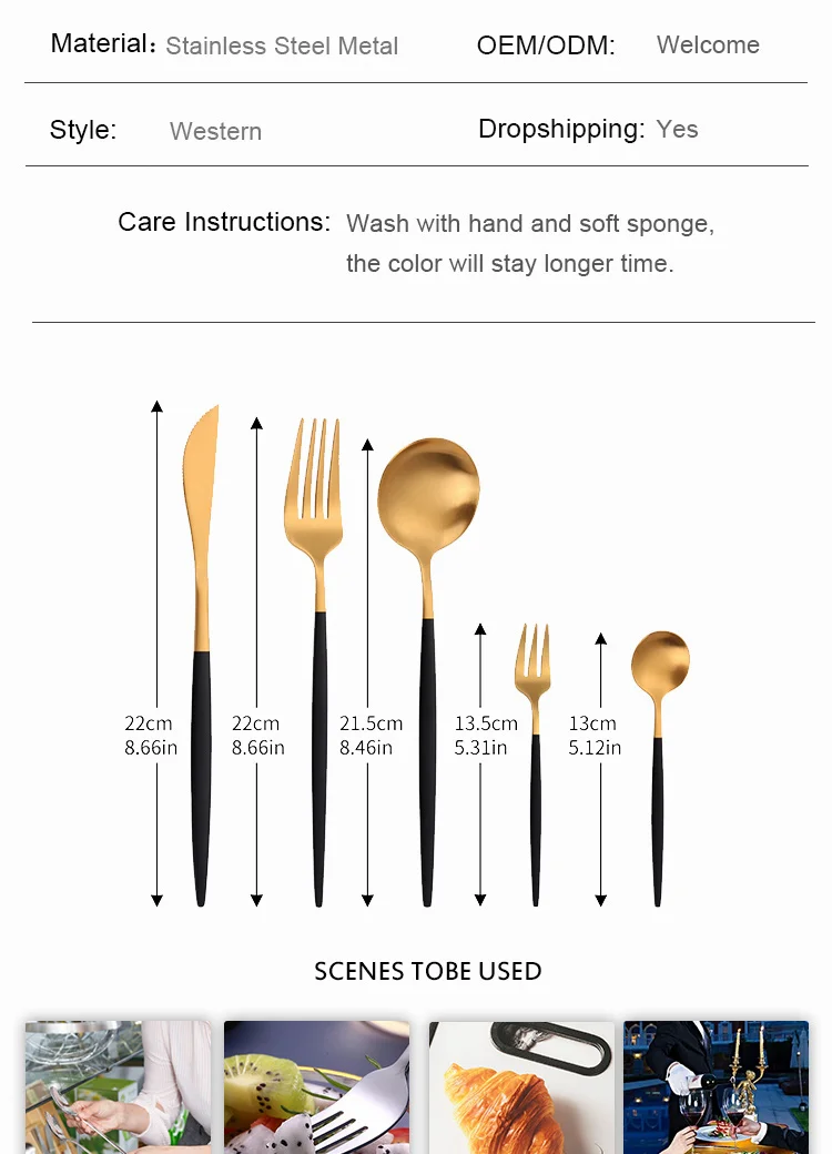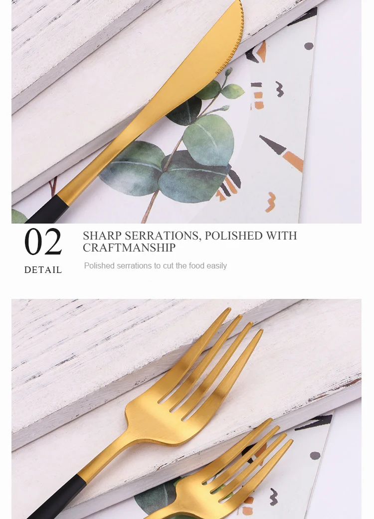 Столовые приборы из нержавеющей стали черного и золотого цвета, 1 шт.