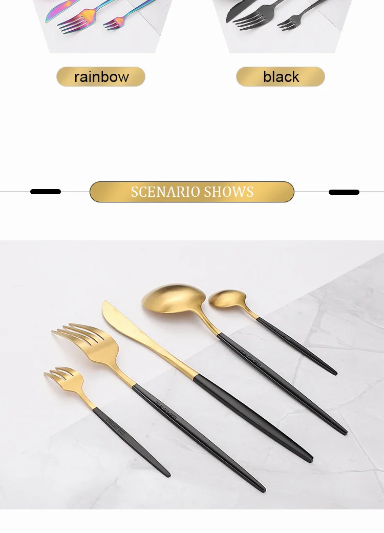 Набор столовых приборов из нержавеющей стали черного и золотого цве...