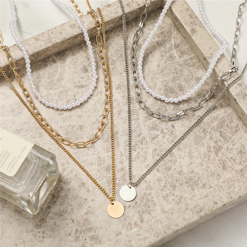 Женское многослойное ожерелье с жемчужной цепочкой, ожерелье золотого и серебряного цвета с подвеской в богемном стиле, Ювелирное Украшение-чокер с жемчугом