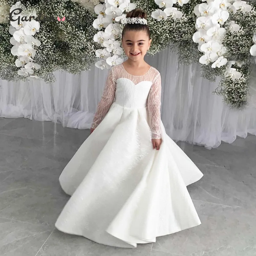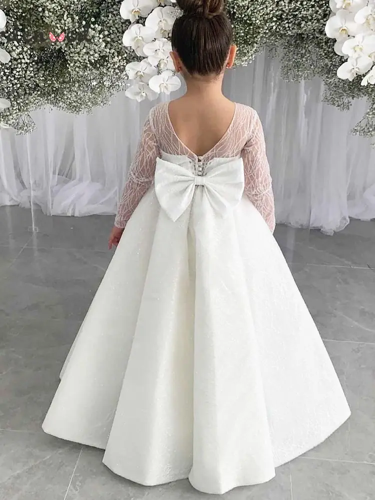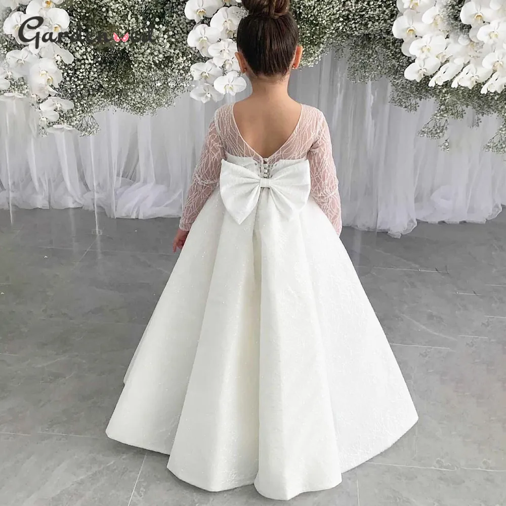 Цветочное платье с бантом для девушек, платье из органзы цвета слоновой кости для свадебной вечеринки, милое бальное платье, элегантные платья принцессы, новый год 2021