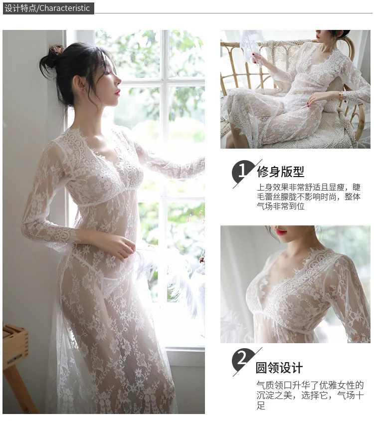 Женская ночная сорочка, соблазнительная кружевная длинная ночная ру...