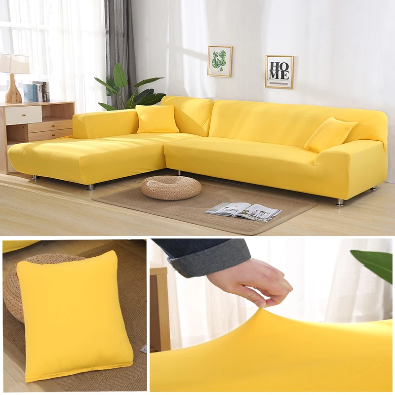 Однотонный растягивающийся чехол для дивана в гостиную, полноразмерный нескользящий чехол для дивана 1234, угловой L-образный диван, необходим 2 шт.