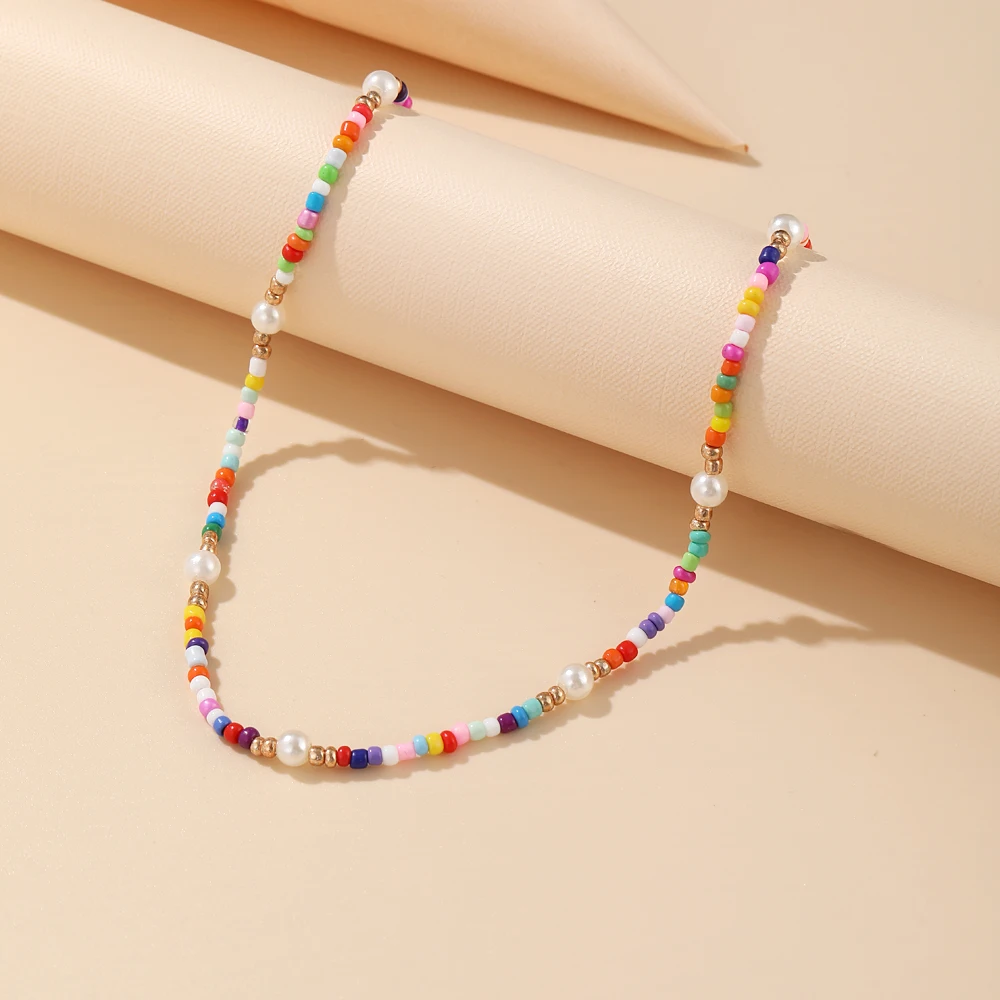 Цепочка-ожерелье Женская, короткая, разноцветная, ручной работы, Колье чокер с бусинами