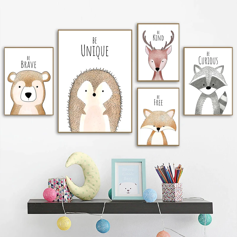Детская комната животные настенные плакаты Decorativo слон настенны...