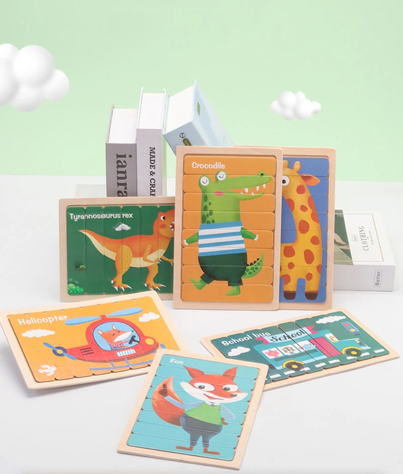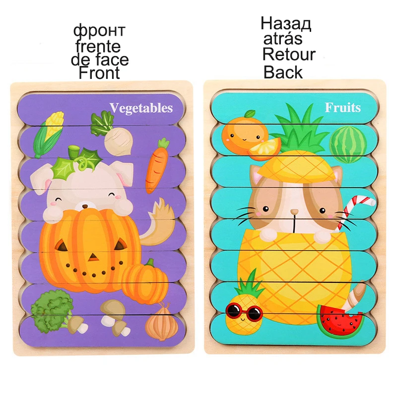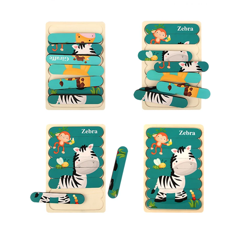 Игрушка Монтессори, детские животные, 3D пазл, детская двухсторонняя полосатая головоломка, деревянная игрушка, рассказ истории, обучающая игрушка для малышей