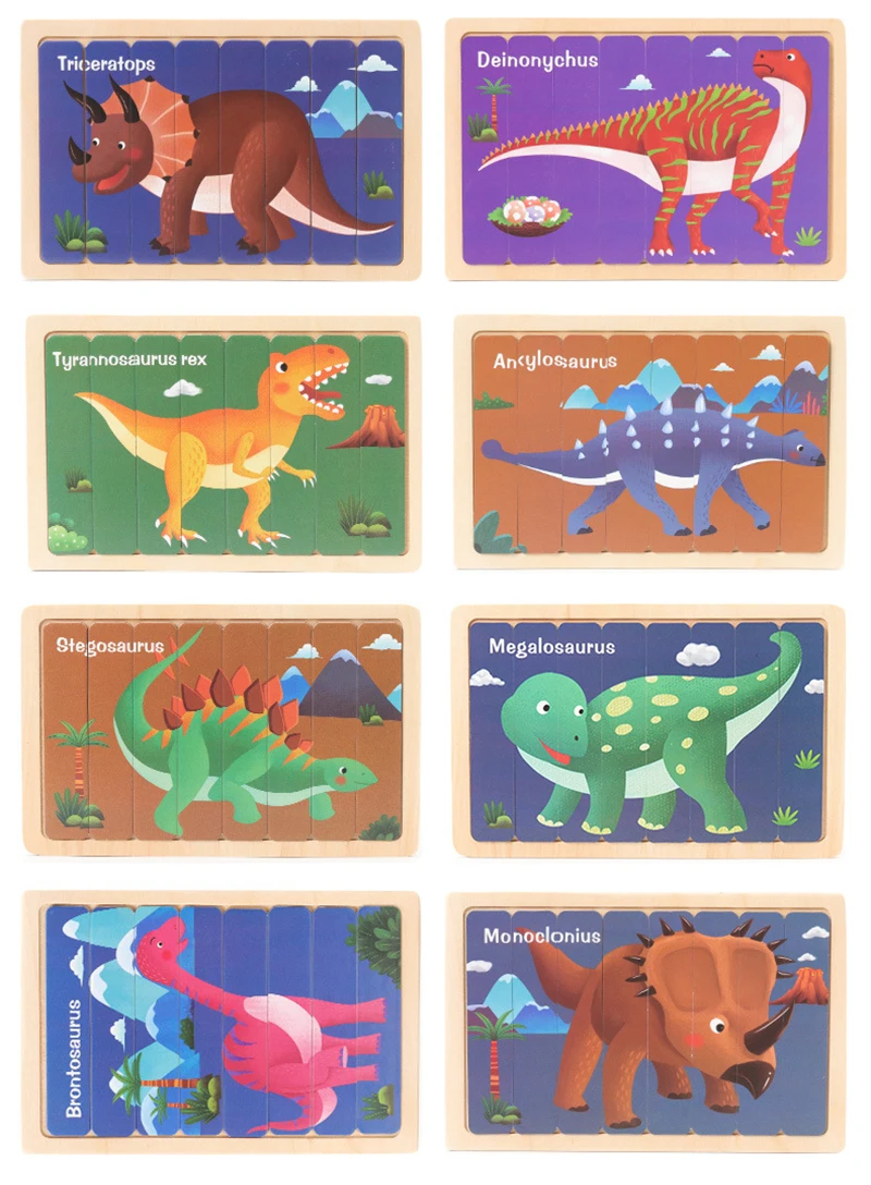 Детские деревянные двухсторонние Пазлы Монтессори, игрушка в виде полосы животных, 3D головоломка, рассказ, укладка, пазлы, обучающие игрушки для детей, подарок