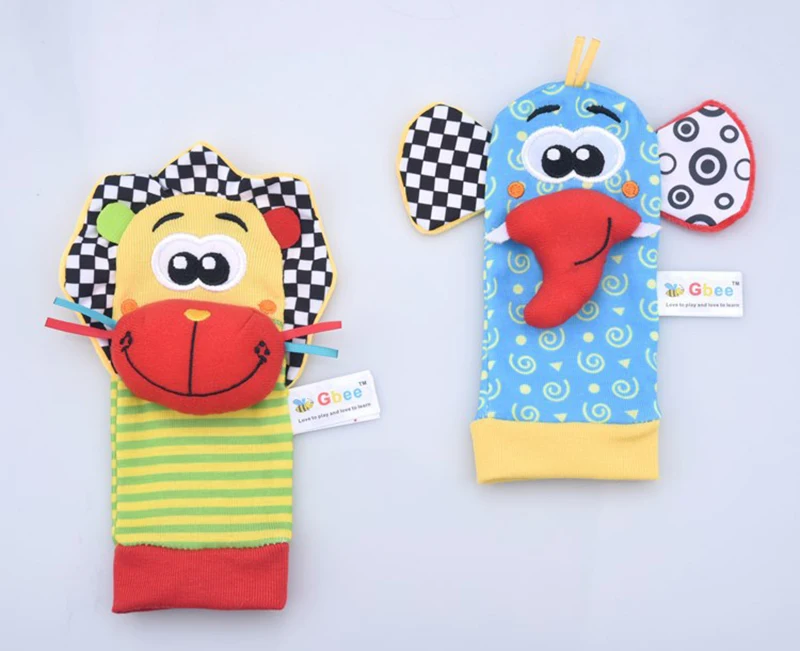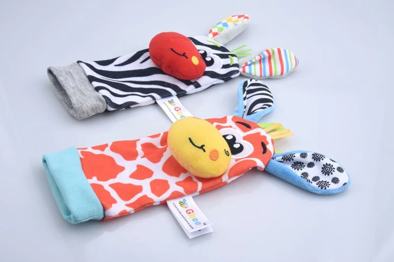 Детские носки для малышей, погремушки, игрушки для малышей 0-12 месяцев, плюшевые Носки с рисунком животных для новорожденных, погремушки с ремешком на запястье для маленьких мальчиков и девочек