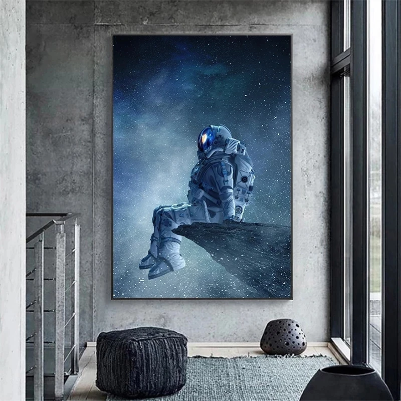 Современное искусство одинокий астронавт сидящий в пространстве Хол...