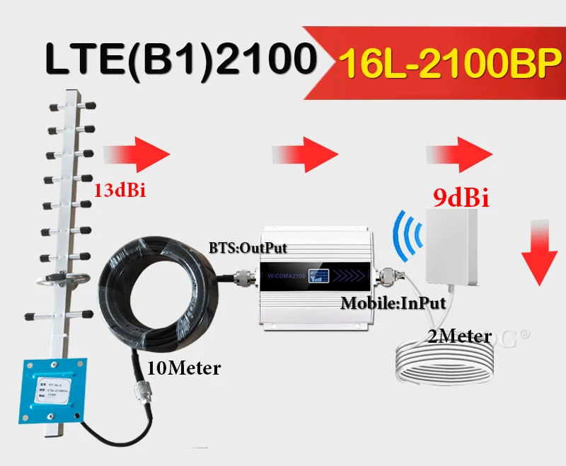 Что входит в комплект ----Только 2100 МГц усилитель = Band1 2100 МГц 3G усилитель сигнала + источник питания;16L- 2100BP = WCDMA Band1 2100 МГц 3G усилитель сигнала + 13dBi антенна Yagi + 9dBi Панель антенна + 10 м кабель + Питание;