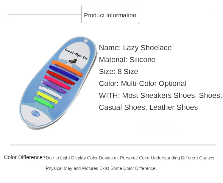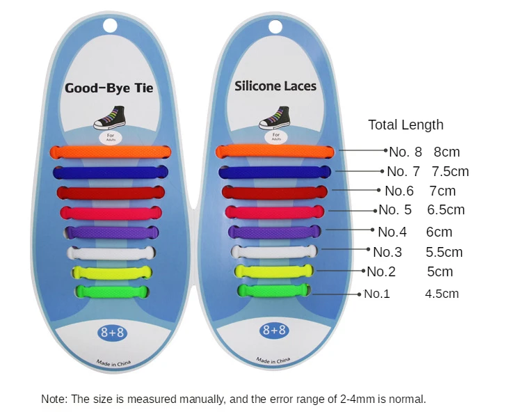Название продукта: шнурки для ленивыхМатериал: силиконЦвет: красный, желтый, фиолетовый, серый, коричневый, зеленый, темно-синий, розово-красный, черный, белый, небесно-голубой, оранжевый, смешанный цветУпаковка: пакет OPPСпецификация: 16 шт./упак.Применимый возраст: ВзрослыеСочетание: большинство спортивной обуви, бордовая обувь, повседневная обувь, кожаная обувьПодходящий Сезон: лето, зима, весна, осеньФункция: свободная системаОсобенности: общий шнурок обладает высокой прочностью на разрыв, его нелегко сломать, не нужно завязывать шнурки, его легче надевать и снимать