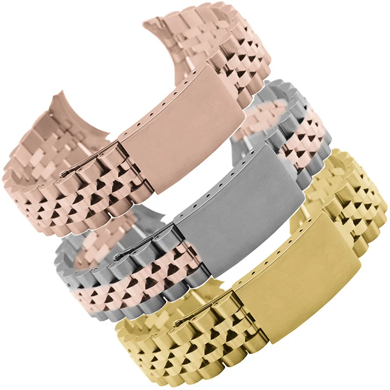 Ремешок из нержавеющей стали с изогнутым концом для часов, цельнометаллический браслет с 5 бусинами для наручных часов, с пряжкой в форме черепахи, инструмент, 13 17 18 19 20 21 22 мм