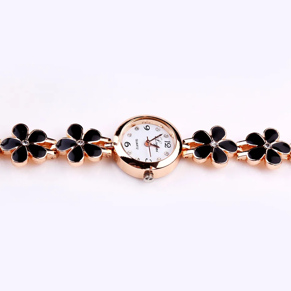 Часы наручные женские с цветочным ремешком, модные роскошные универсальные деловые, из розового золота