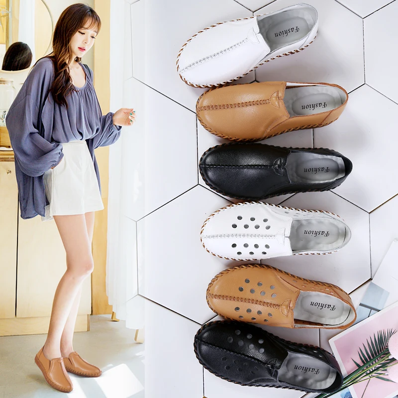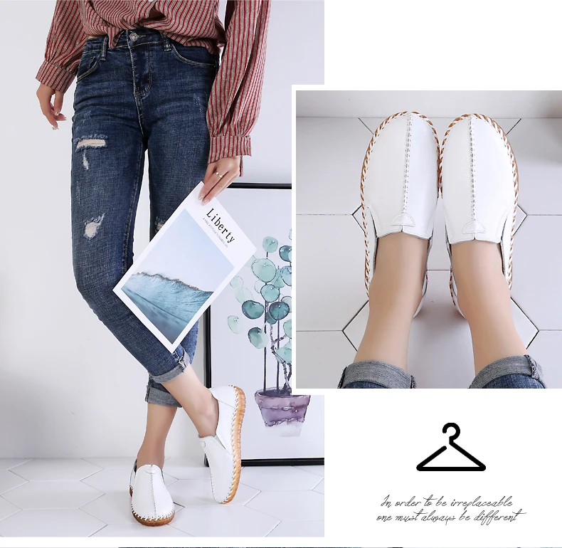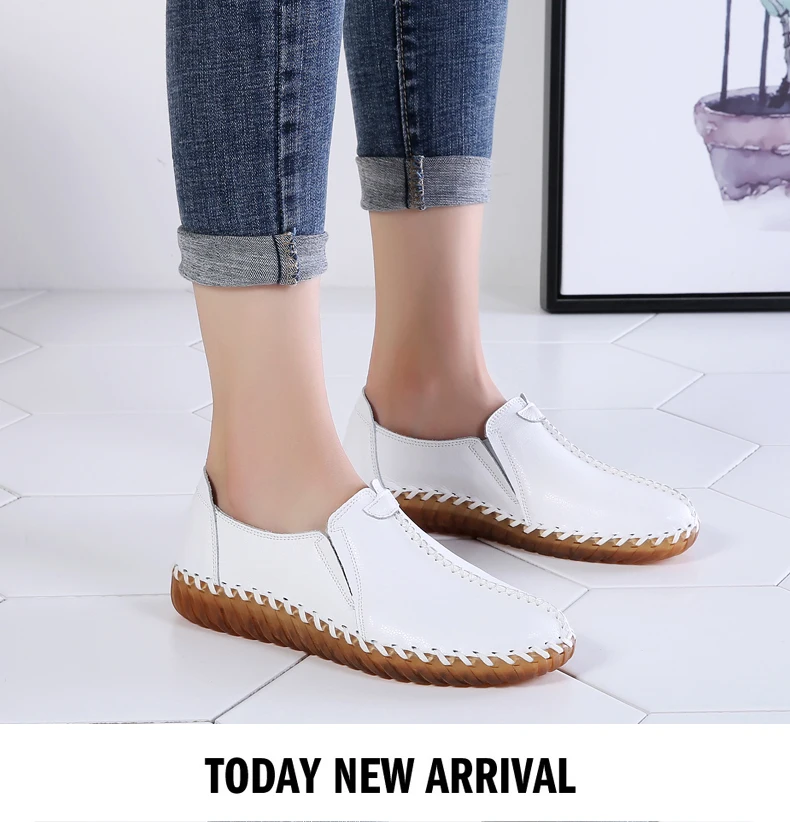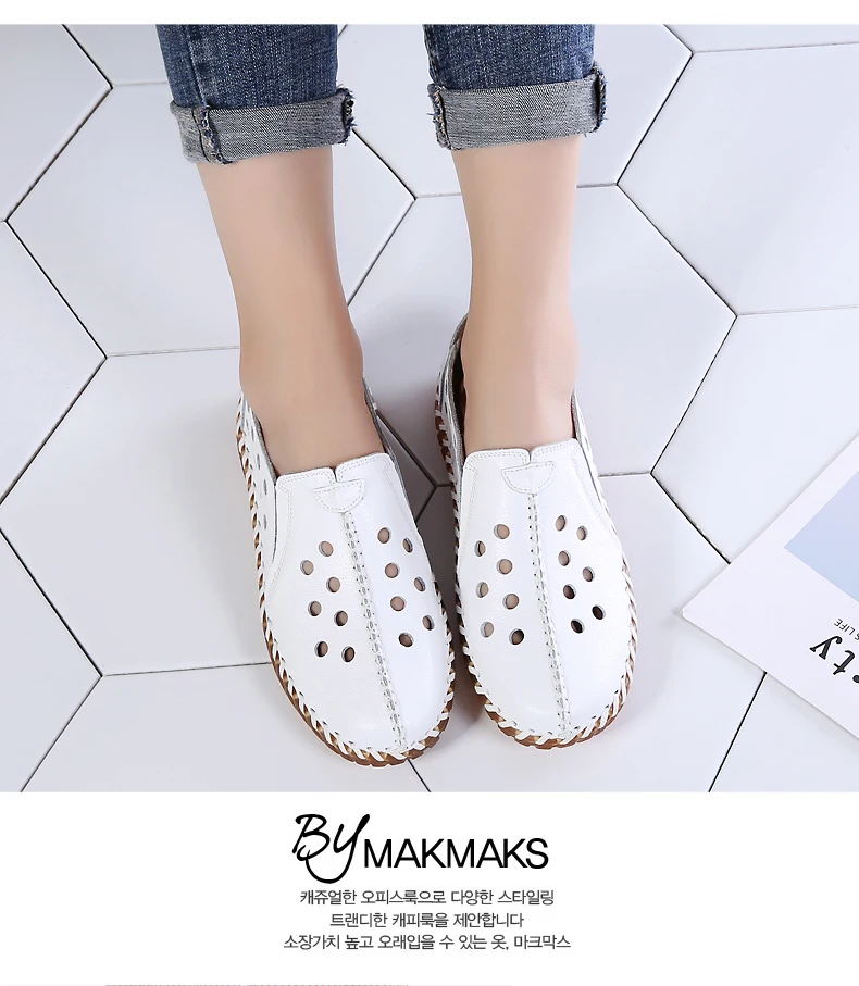 Балетки женские из натуральной кожи, удобные мокасины, плоская подошва, на шнуровке, ручная работа, цвет белый, лето