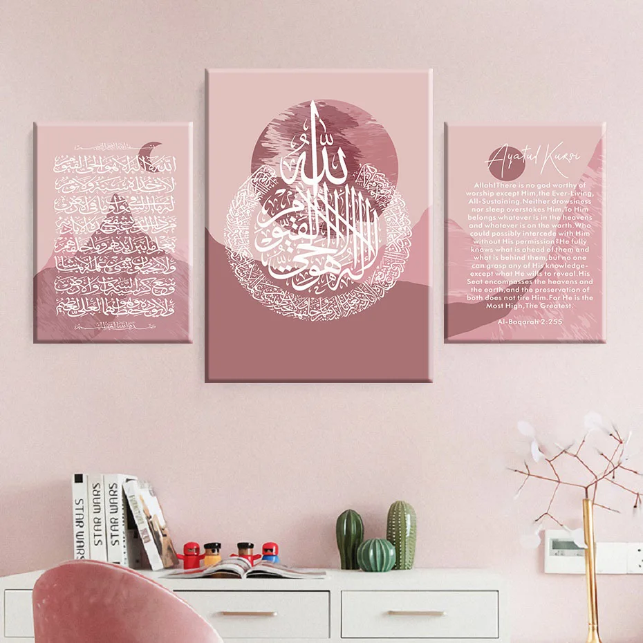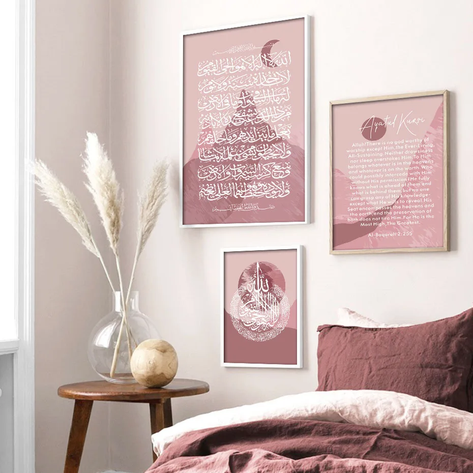 Плакаты и принты для спальни, розовые, аятул КУРСИ, исламские насте...