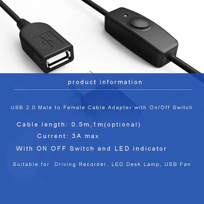 1 шт. Удлинитель USB 2,0 для синхронизации данных, удлинитель USB с переключателем ВКЛ.ВЫКЛ., светодиодный индикатор для ПК, USB вентилятор, светодиодная лампа