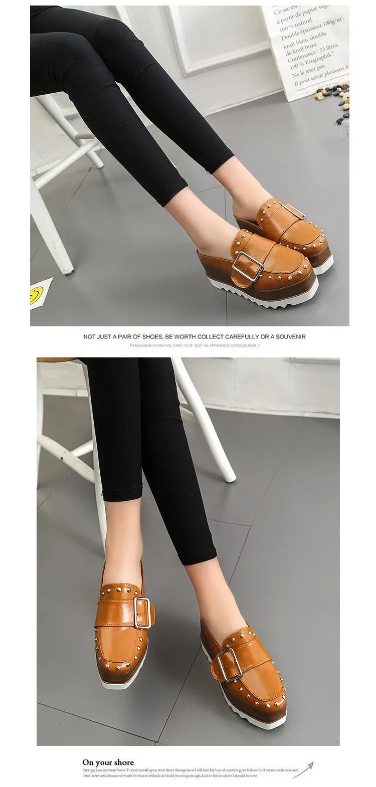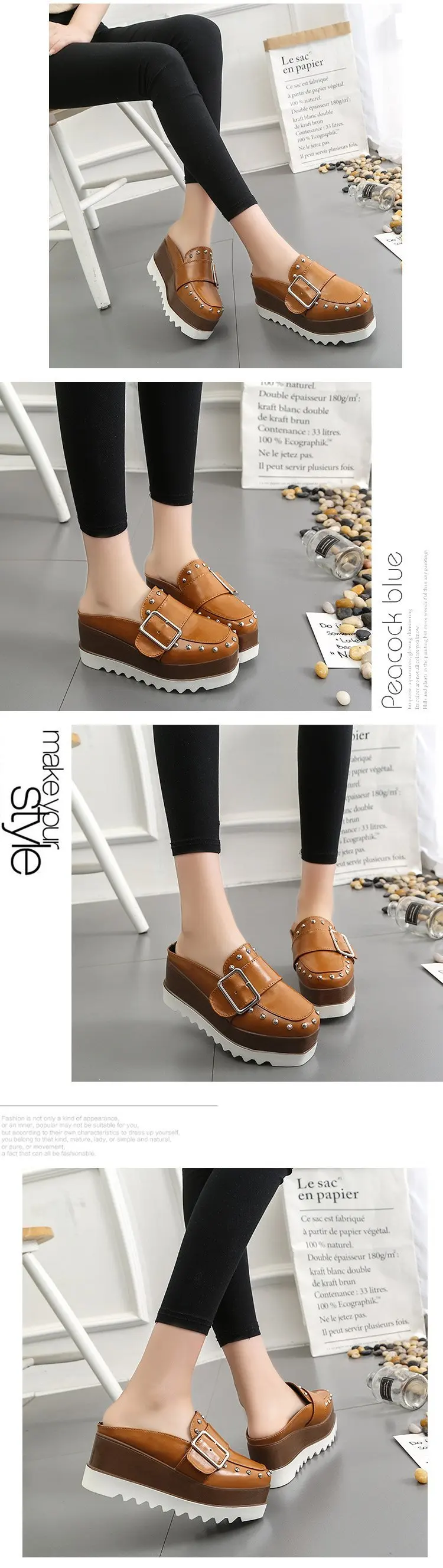 Женские шлепанцы на танкетке; Обувь на платформе; Коричневые туфли-...
