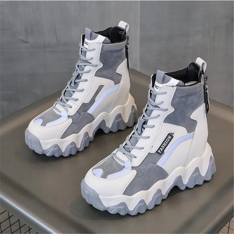 обувь на платформе ботильоны женские весна обувь женскаяComemore весенние женские высокие сапоги панк до лодыжек Осенние повседневные женские туфли на платформе на танкетке женские массивные высокие кроссовки зимние 40