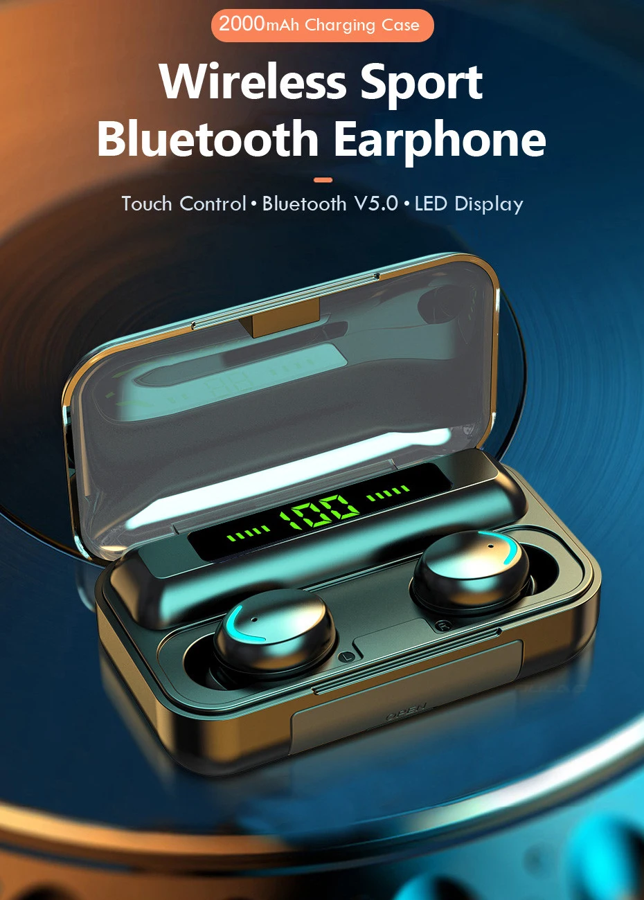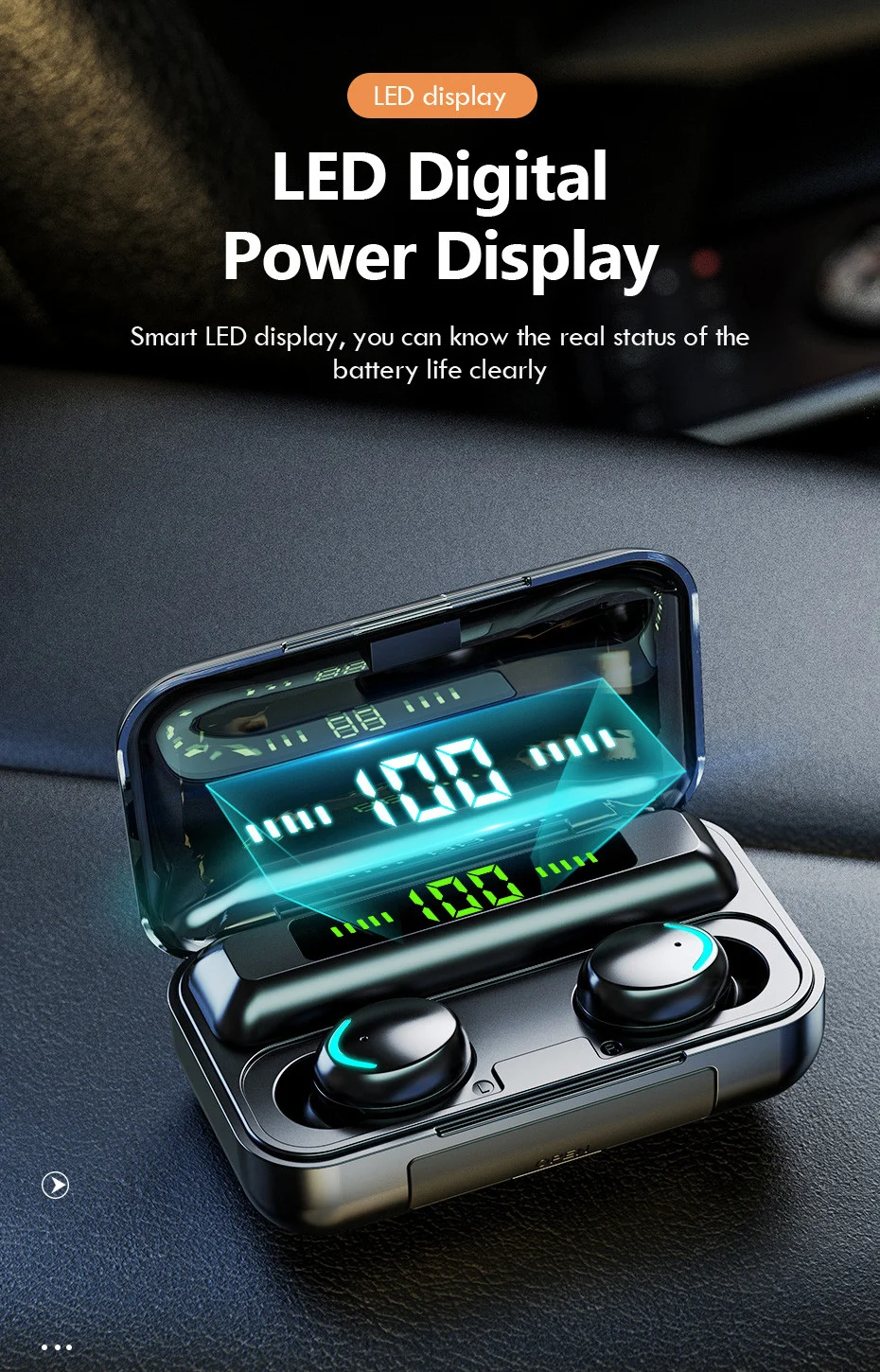 TWS-наушники F9 с поддержкой Bluetooth, 2000 мА ч, с микрофоном