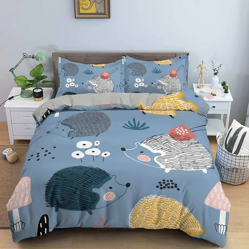 Комплект постельного белья с изображением ежа, двуспальный комплект постельного белья с одеяломпододеяльником, простыней и наволочками