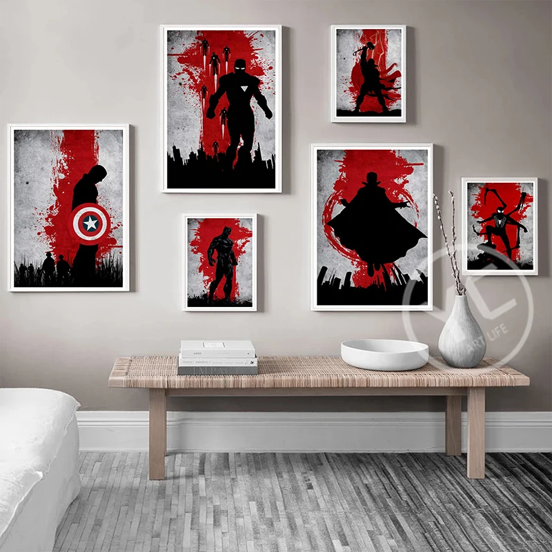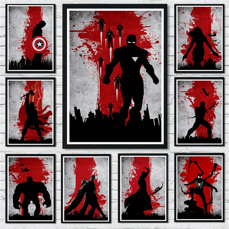 Рисунок супергероев Marvel, Человек-паук, Железный человек, холст, ...