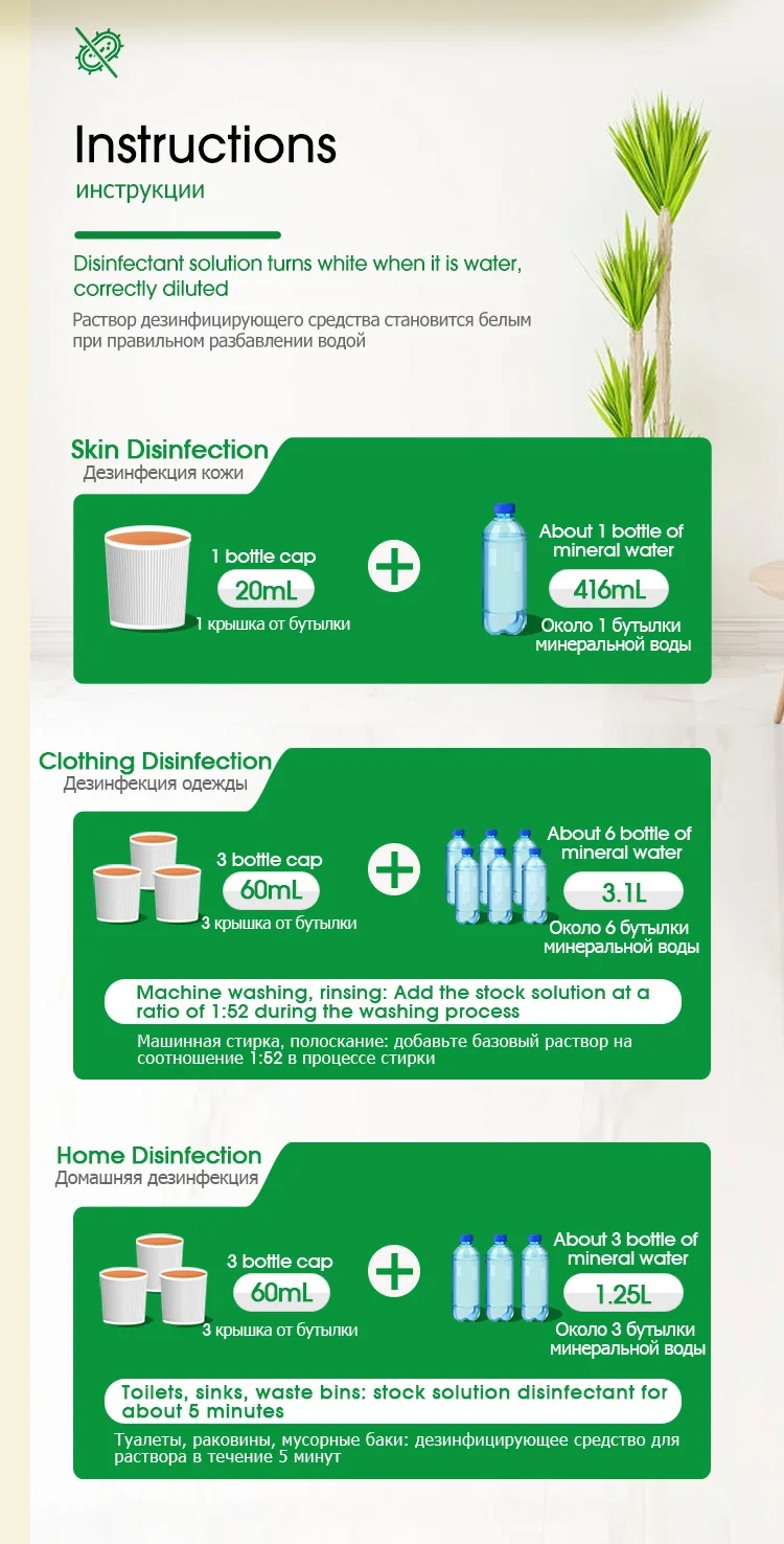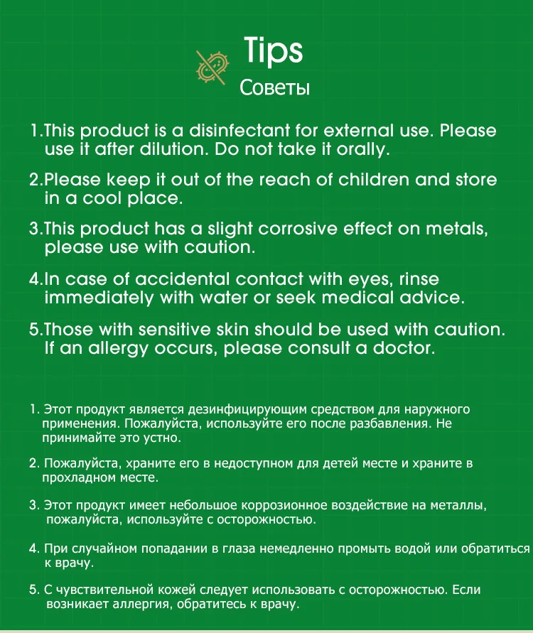1. Этот продукт для внешнего использования. Используйте его после разбавления. Не принимайте его в устной форме.